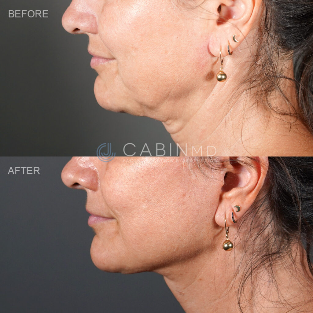 51-year-old female months post-op from a deep plane face and neck lift, along with lower facial fat grafting, to correct cheek, jawline, and neck laxity and hollowness. The patient also underwent upper blepharoplasty to improve the upper eyelid skin, along with fat grafting to the upper and lower eyelids to improve contour and decrease hollowness.